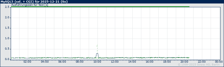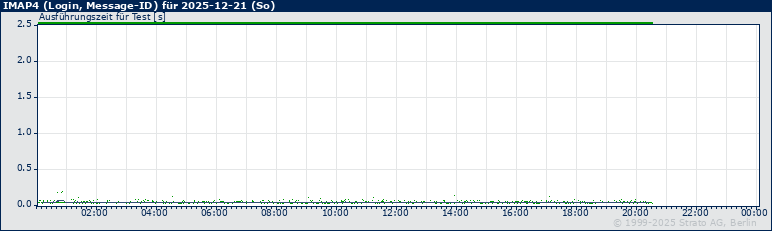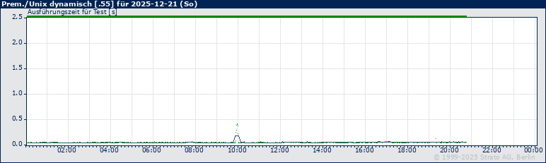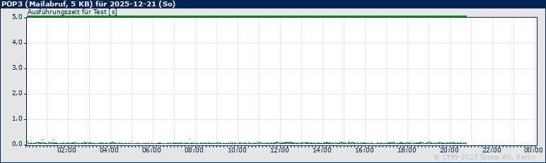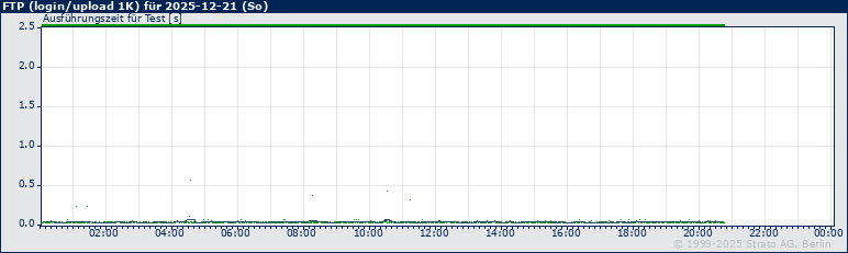 Am 2025-12-21 traten keine Timeouts/Fehler auf. Antworten, die erst nach 10 oder mehr Sekunden eingetroffen sind, sind auf der oberen X-Achse durch eine orange, Timeouts oder Fehler als graue Markierung hervorgehoben. Timeouts sind zusätzlich als vertikale graue Linie im Graph dargestellt.